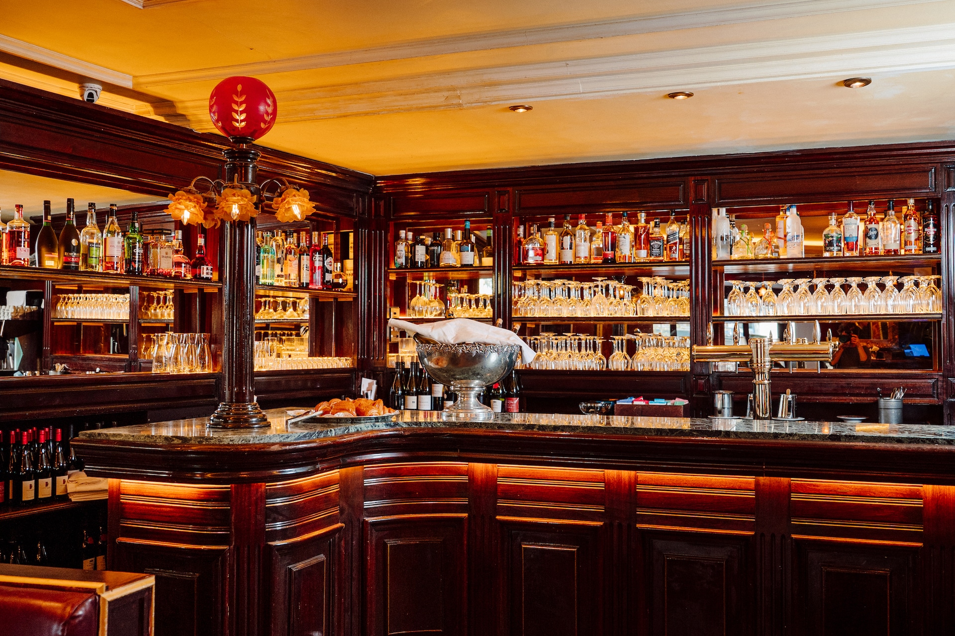 Brasserie chic et contemporaine le jour, le lieu se transforme à la nuit tombée en un espace vibrant et festif,